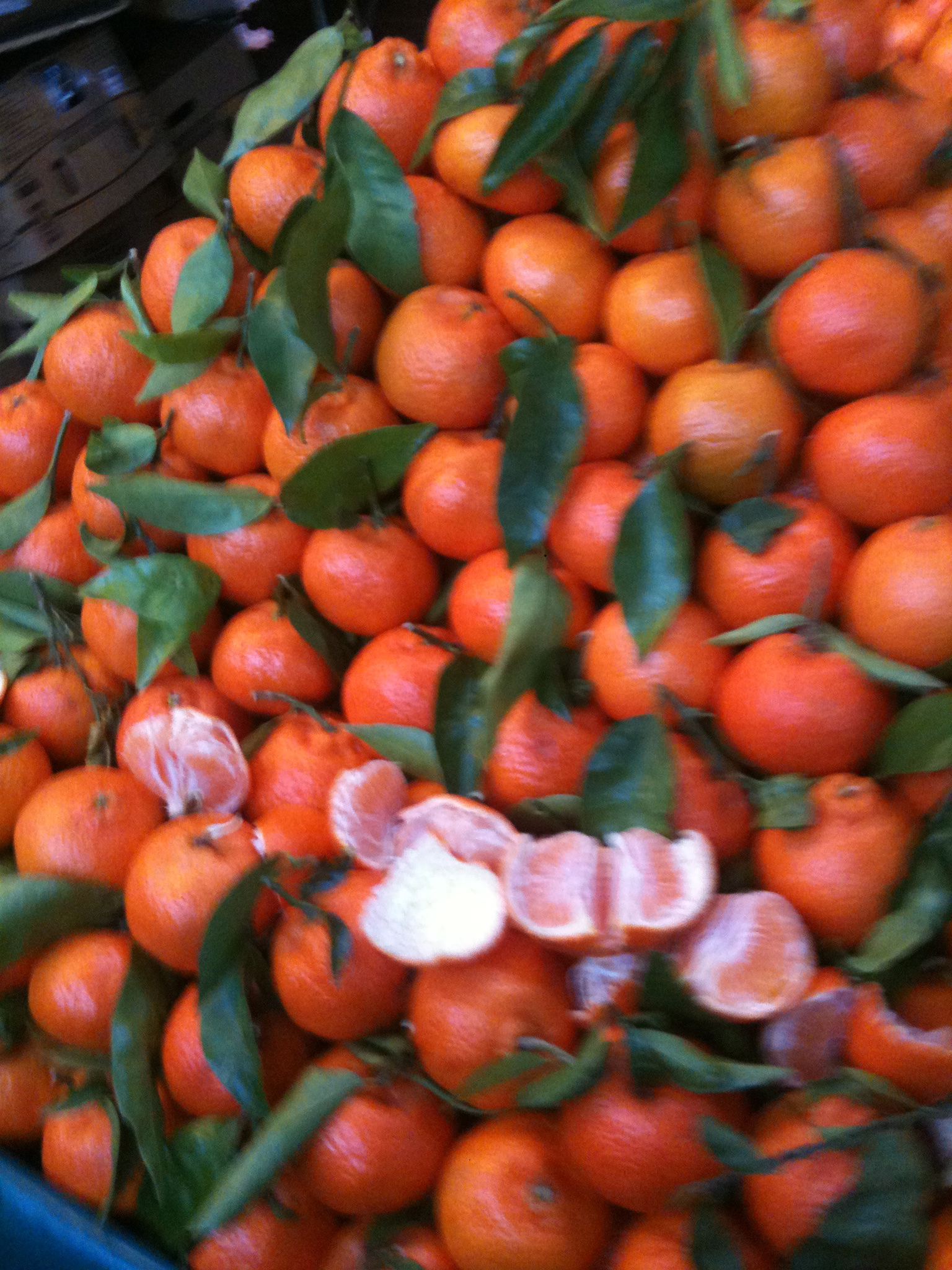 As for the main course, the ingredients included fennel, red pepper, carrots and onions or shallots. Plus the tangerines. I would locate a small can of tomatoes (or a few fresh ones if they’re decent) and maybe some black olives. The little black shriveled ones cured in olive oil, referred to as Niçoise olives (from Nice, France) would be great. A braised fennel dish could be accompanied by chicken or fish, or tossed into pasta. Very south of France!