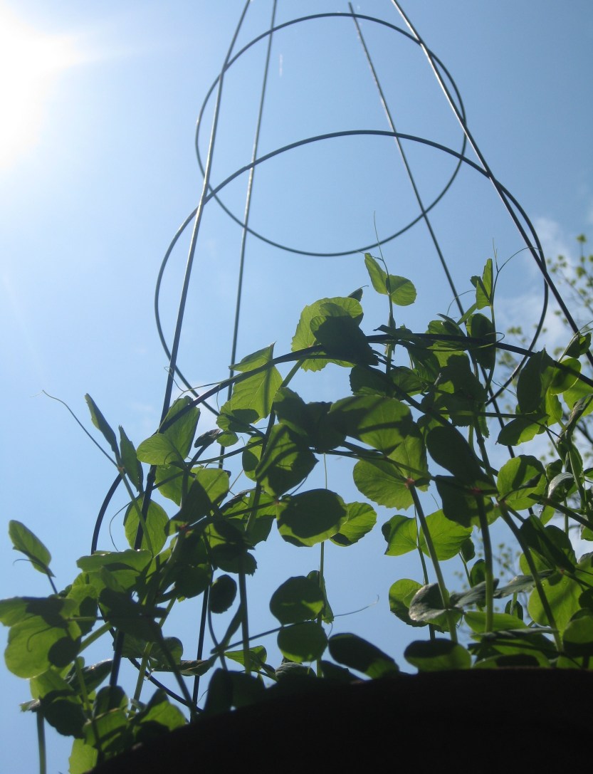 What were you viewing at 11 a.m. EST today, May 2? The New York Times announced the opportunity to submit entries into a global photo mosaic, organized in categories and locations. So, hearing about this 15 minutes in advance, I rushed out with my camera to find something that would have some meaning to me, and maybe to someone else. So here we have it: a snapshot of peas in pots, part of my courtyard garden, a kind of potager, or kitchen garden, filled with herbs and flowers and a constant source of inspiration and sustenance. It connects in our in-town home to the natural world in our own little way.