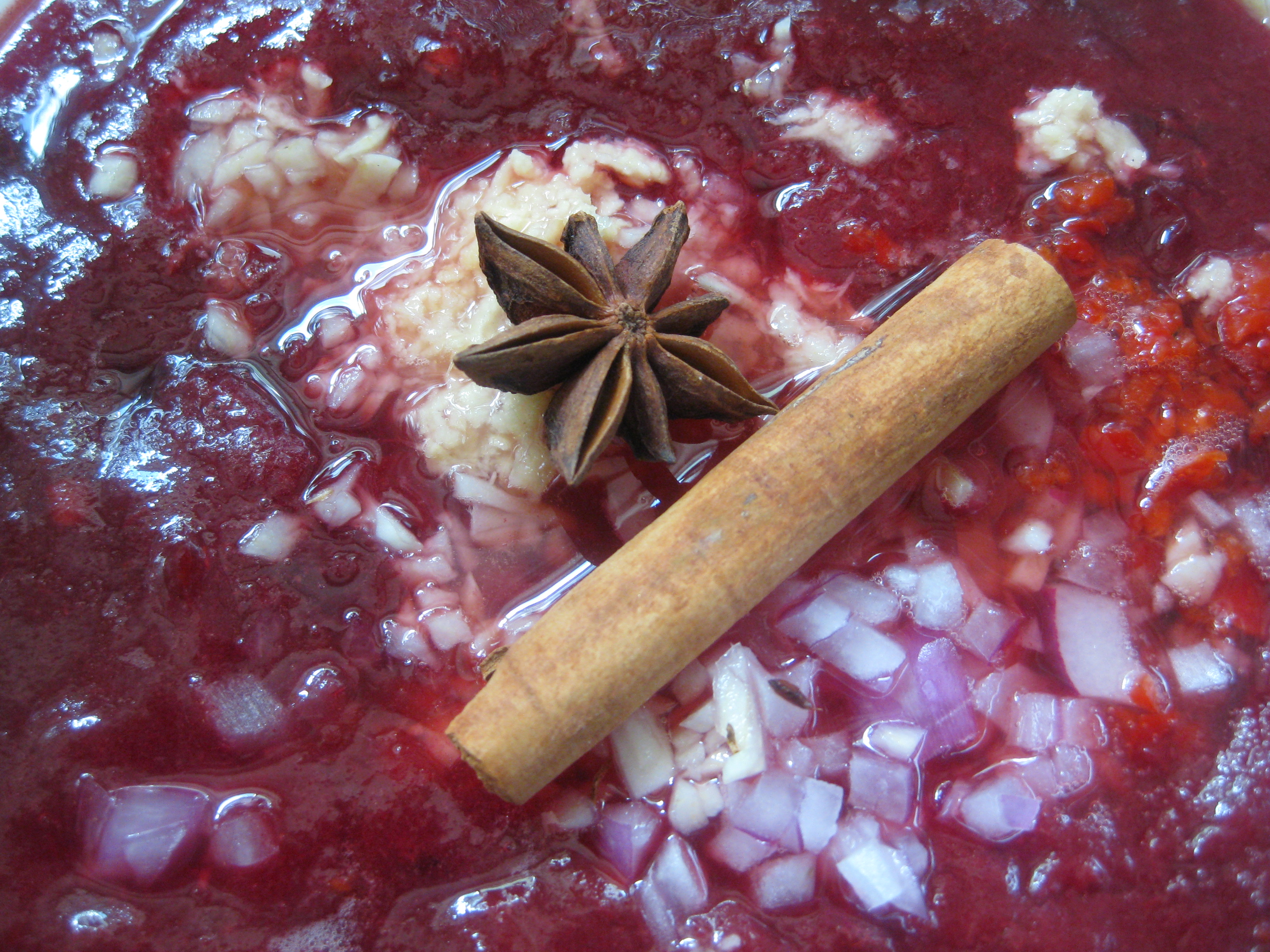 Now I’ll be on the lookout for more red plums, with red skin and red flesh, though I admit that I used up a couple of stray pluots in this batch. Since I had a hard time getting the skin off the plums that I used in my jam to become soft enough, this time I pureed the fruit before cooking it. The origin of the recipe is the Ball Complete Book of Home Preserving but I adapted it pretty considerably. Note that when I double the recipe I’ll be careful not to increase the cinnamon or star anise, since it will pervade whatever amount of sauce is in the pot.
