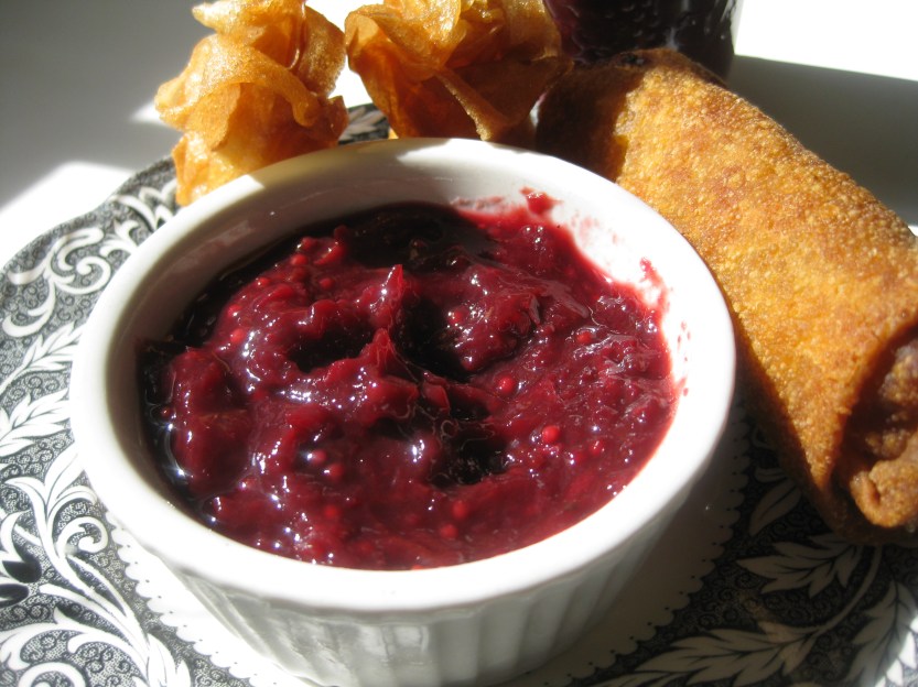 I’m really happy with my first pass at a plum sauce: slightly sweet and sour, with a tang from the ginger and mustard seeds, heat from the jalapeno, and a rich spice flavor from star anise. I made a small trial batch so I canned only one 8-oz jar and had one 4-oz jar for sampling. It was great with vegetarian egg rolls, since it had a good mouth feel in contrast to the crunch of the egg roll wrapper. I can easily imagine it with crispy potatoes, vegetable fritters or with meat, for those who aren’t vegetarian.