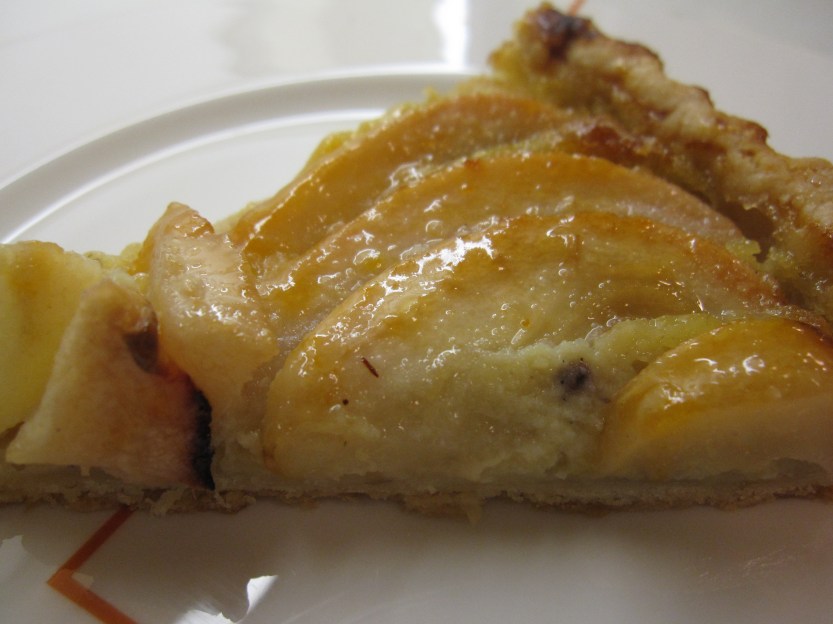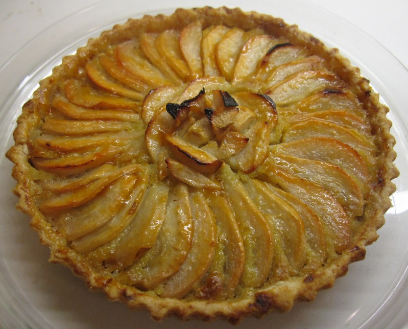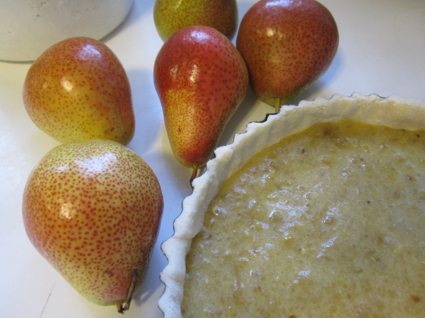 For this month’s Tigress Can Jam, I made a delectable pear and chestnut jam flavored with vanilla and lemon. The aroma and taste were amazing. I have been collecting pears for a couple of weeks as the season winds down for the local Bartletts, though the Asian pears will continue to be available since they are nearly as sturdy as apples. With extra pears and jam on my hands, I decided to make a pear tart that’s based on oh-so-many apple tarts.