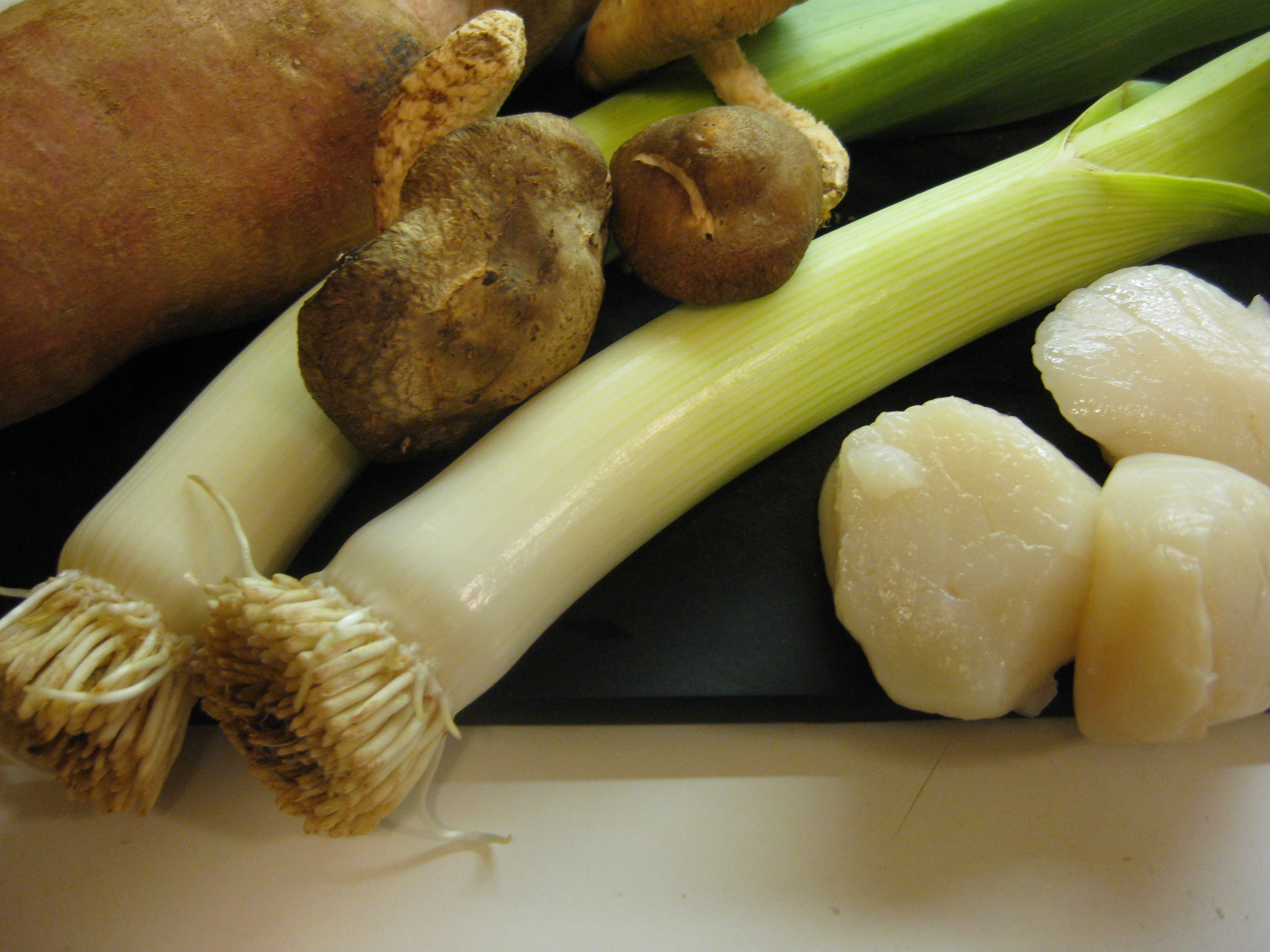 Categories: Dark Days Challenge, Leeks, Mushrooms, Seafood, Sweet potatoTags: