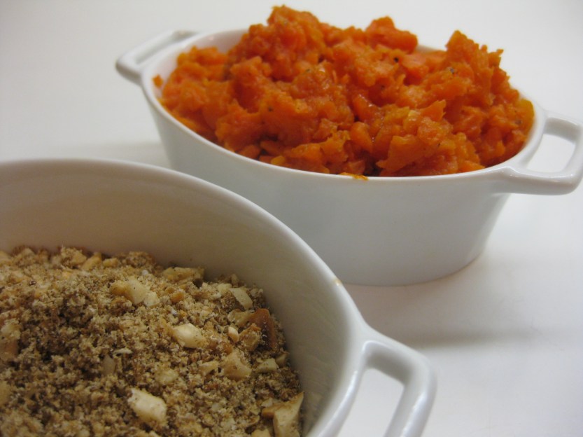 At the restaurant, you dip the bread in olive oil and then in the dukkah (or add the dukkah to the oil) and spoon on the carrot puree. Honestly, the carrot puree is fabulous on its own and I could imagine skipping the bread and oil and simply adding the spice and nut mixture straight into the carrots. Or skipping the carrots and piling the dukkah on bread dipped in olive oil. Other than halving the recipe, I made this straight from the cookbook, though I paraphrased the method and left out the unnecessary salt. To make dukkah, you should have a way of grinding the spices. I use a small former coffee grinder that I reserve for spices. I suppose a mortar and pestle would work too but the sesame seeds should be ground to a paste.