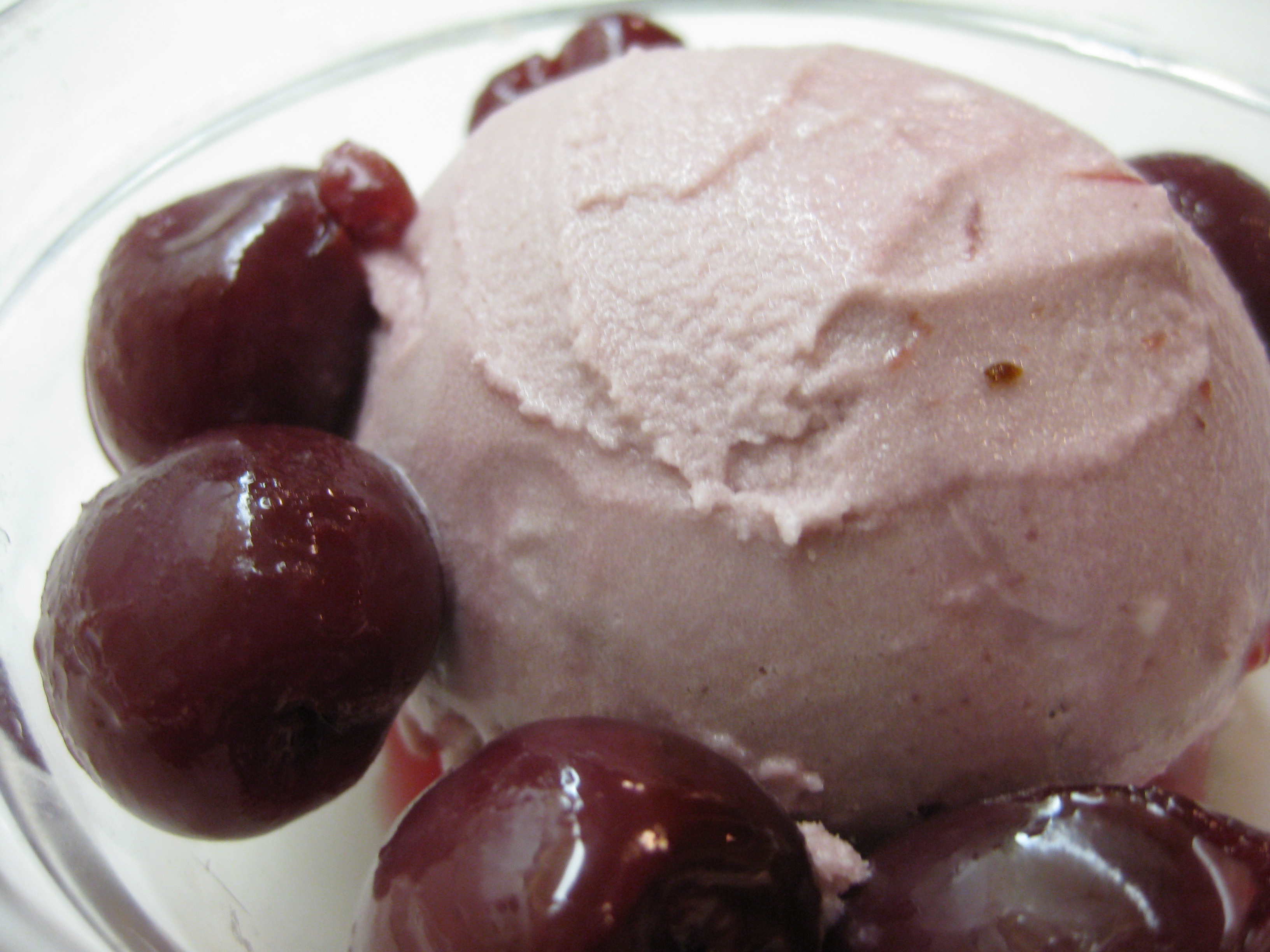 Jewel-like jars of lightly poached summer fruit – peaches and pears in a vanilla-infused simple syrup or slightly spiced cherries in red port wine – make a near instant dessert throughout the dark days of winter. Obviously, the fruit can be spooned on top of a rustic cake or a bowl of vanilla ice cream. However, to satisfy the cravings of a certain other member of our household, I like to turn it into sorbet or ice cream.