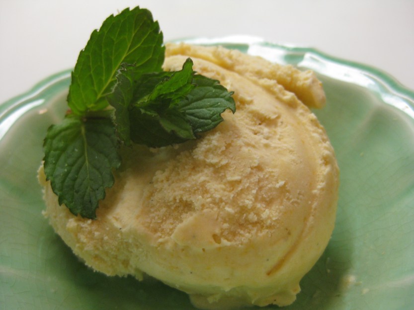 I know the dark days are over when I can pick fresh mint from my garden to garnish the ice cream made from the last jar of vanilla peaches in the pantry. So, for the last course, I thought I’d offer one of the quickest and most clever uses of my pantry stock.