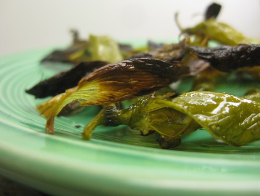 As a lark (since as you know, I’ve rarely met a vegetable I didn’t want to roast), I roasted a few of the more tender pea shells as a little appetizer. It worked! The older ones were too woody, but the young pods were pliable enough to respond to the roasting technique.