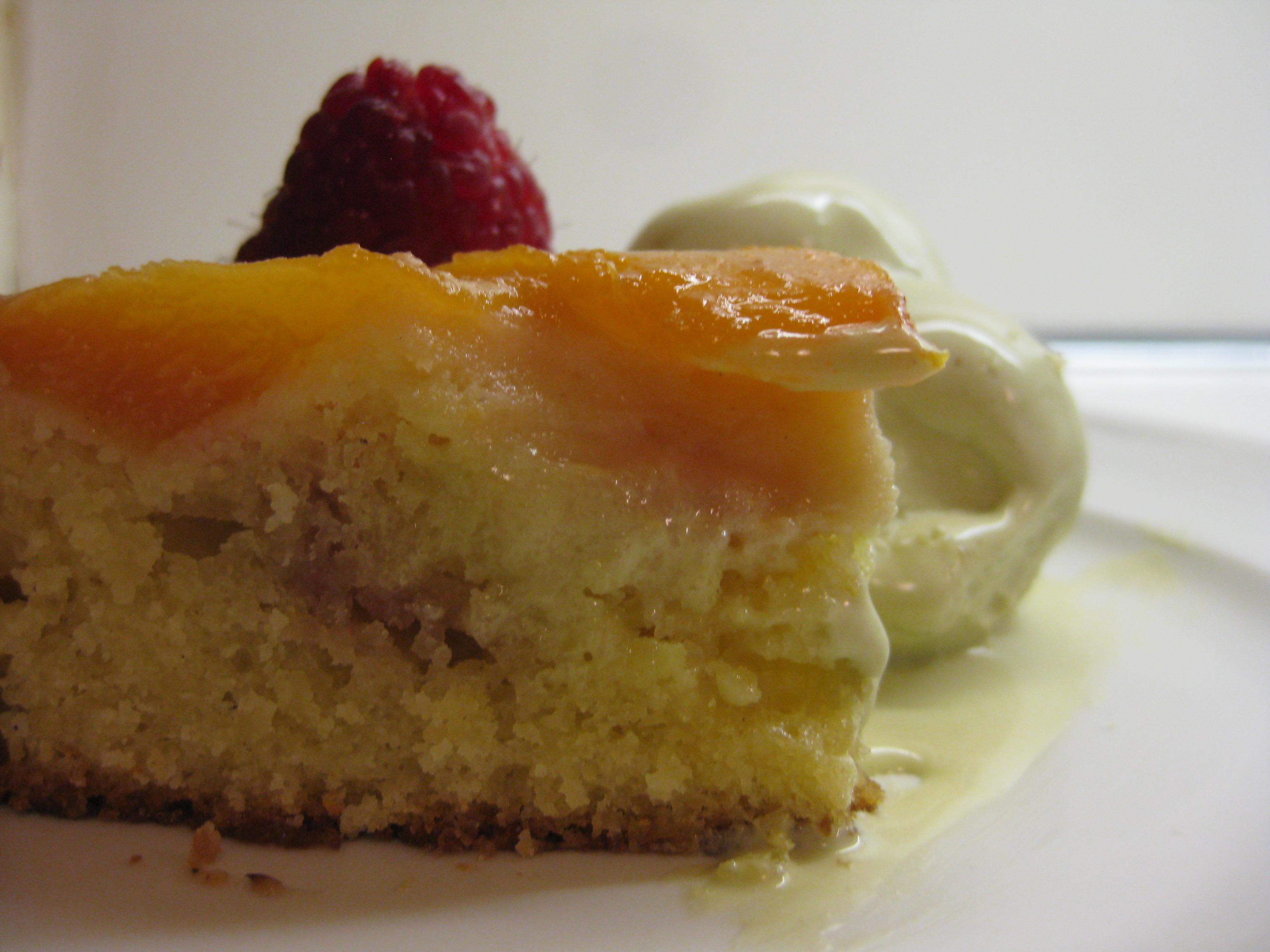Paper Chef: Nectarine Upside-Down Cake with Green Tea Ice Cream