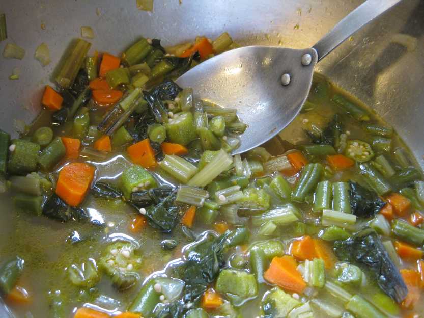 Okra, Green Bean and Chard Soup adapted from Madhur Jaffrey