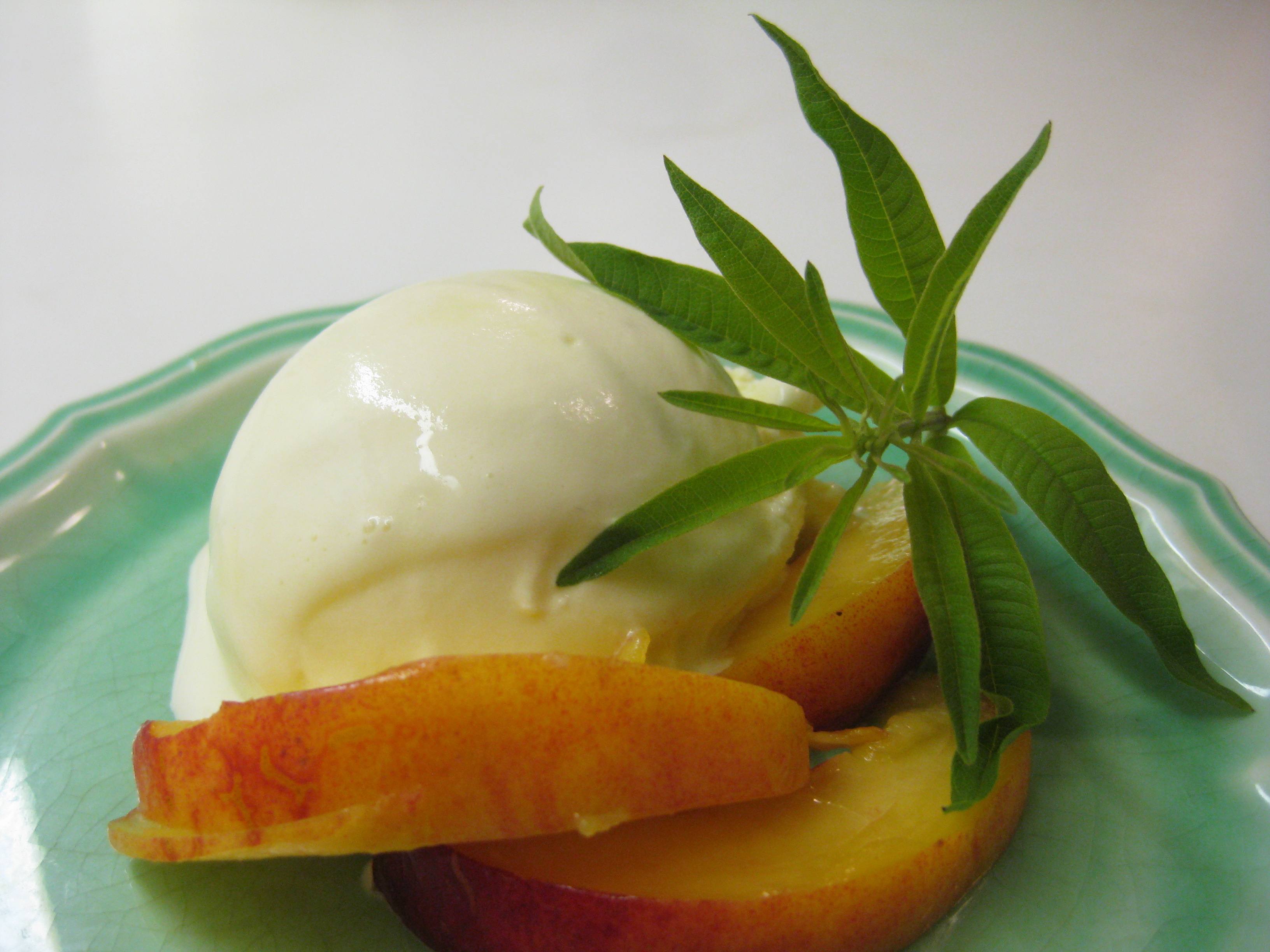 Process in an ice cream maker according to the manufacturer’s instructions. Fold in snipped leaves of lemon verbena if you want a stronger mixture.