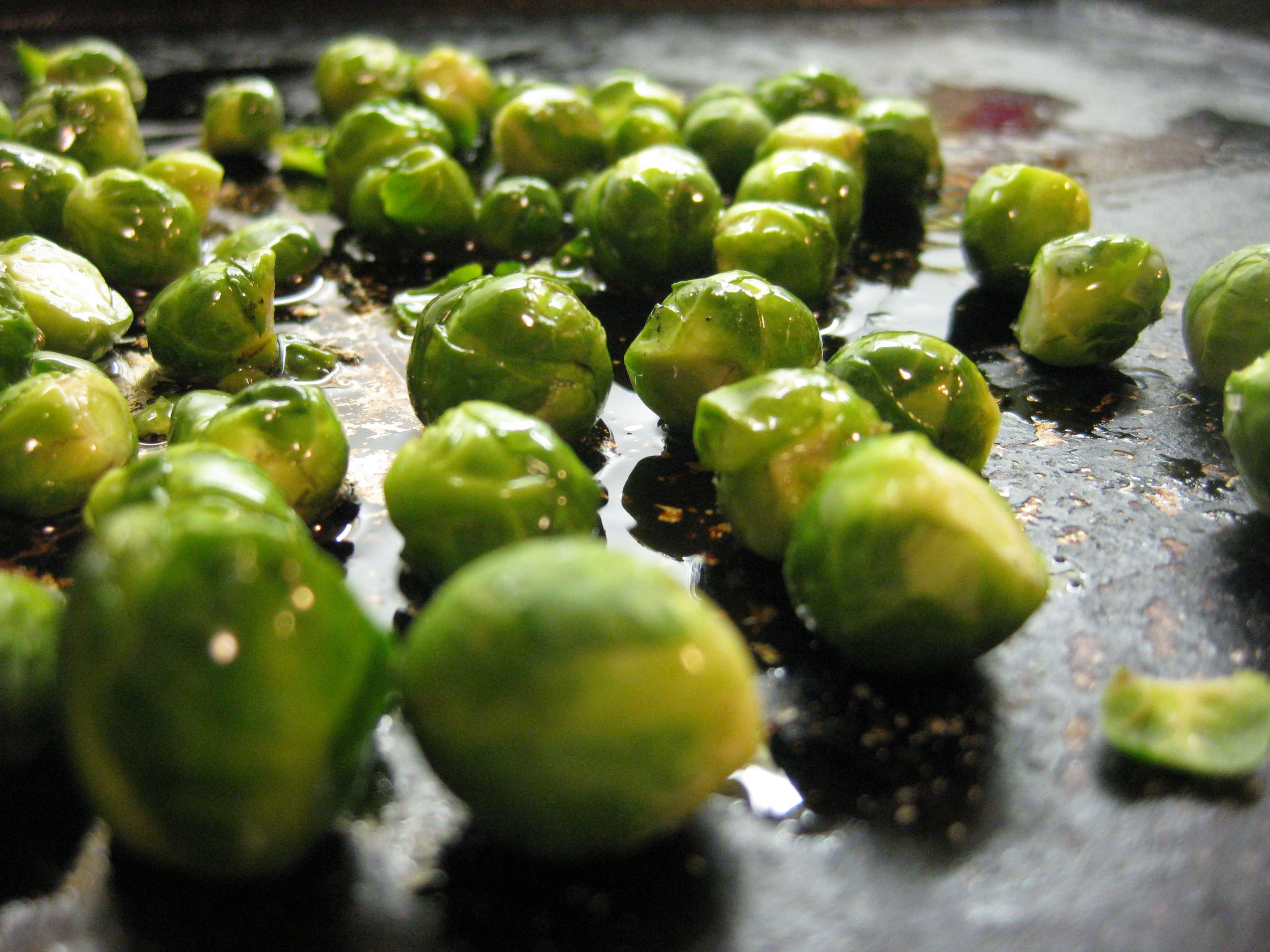 Garnish: roasted baby Brussels sprouts, steamed tender tops of a Brussels sprouts stalk