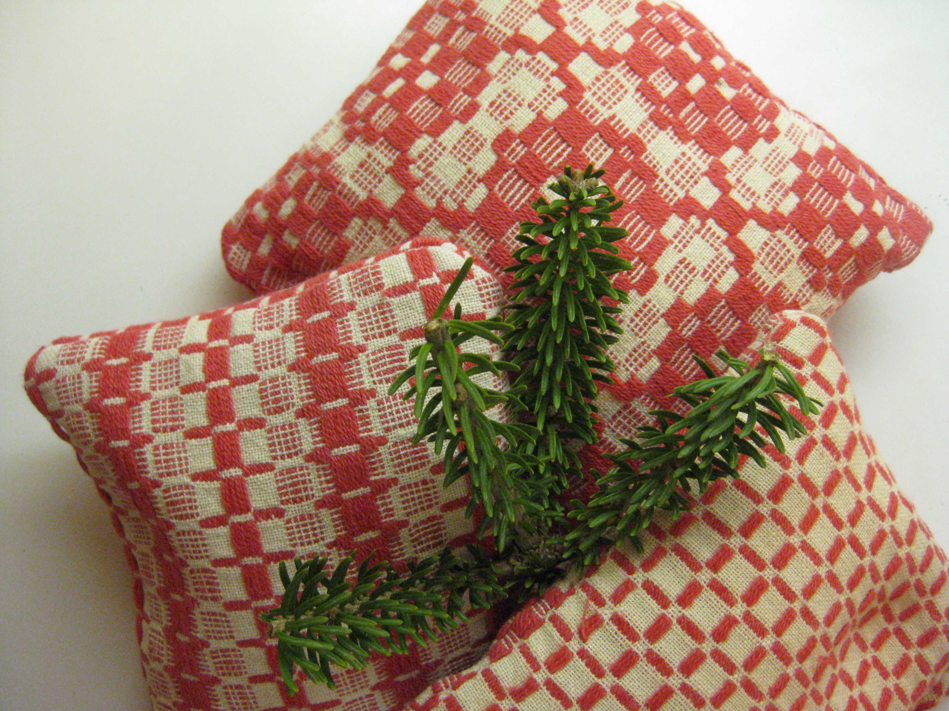 We have a fun family tradition when it comes to our Christmas tree. Instead of plunking it down at the curb, we remove the needles and cut up the rest for kindling. We sew the needles into little pouches (4-5 inches square) that become sachets to keep our beds refreshed. This is an Adirondacks tradition. Last year, I cut up a ragged old red and white woven blanket and mixed and matched the various patterns. Other years, I have used vintage cotton patchwork squares or wool in tartan plaids. It’s a nice way of remembering – all year long — the family gatherings at the winter holidays. And then we start all over again.
