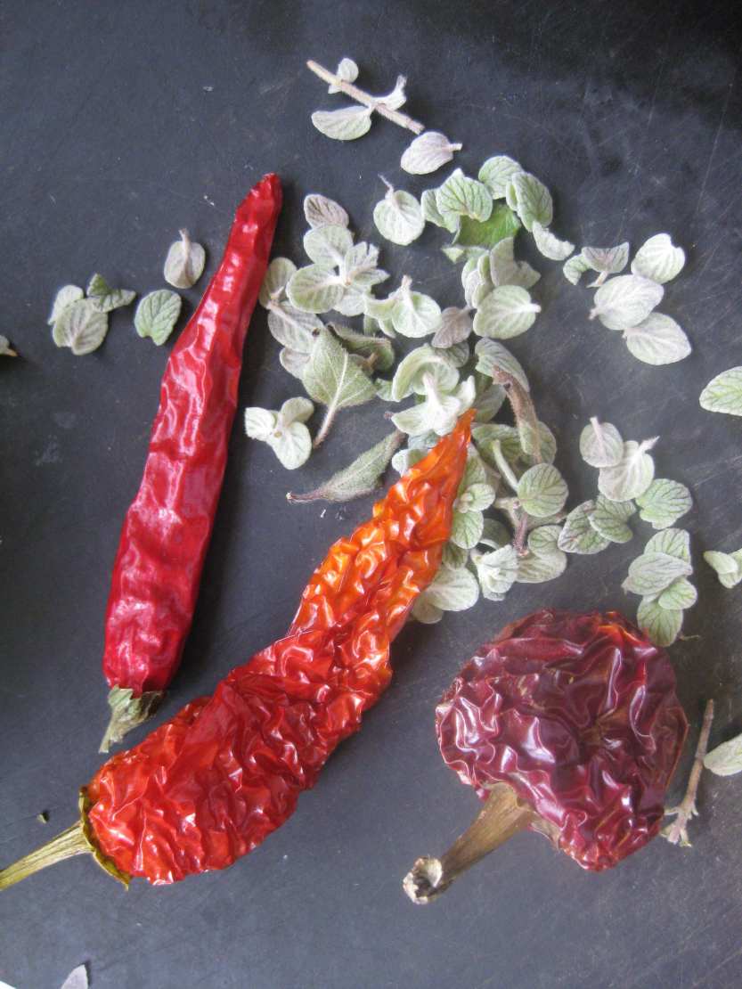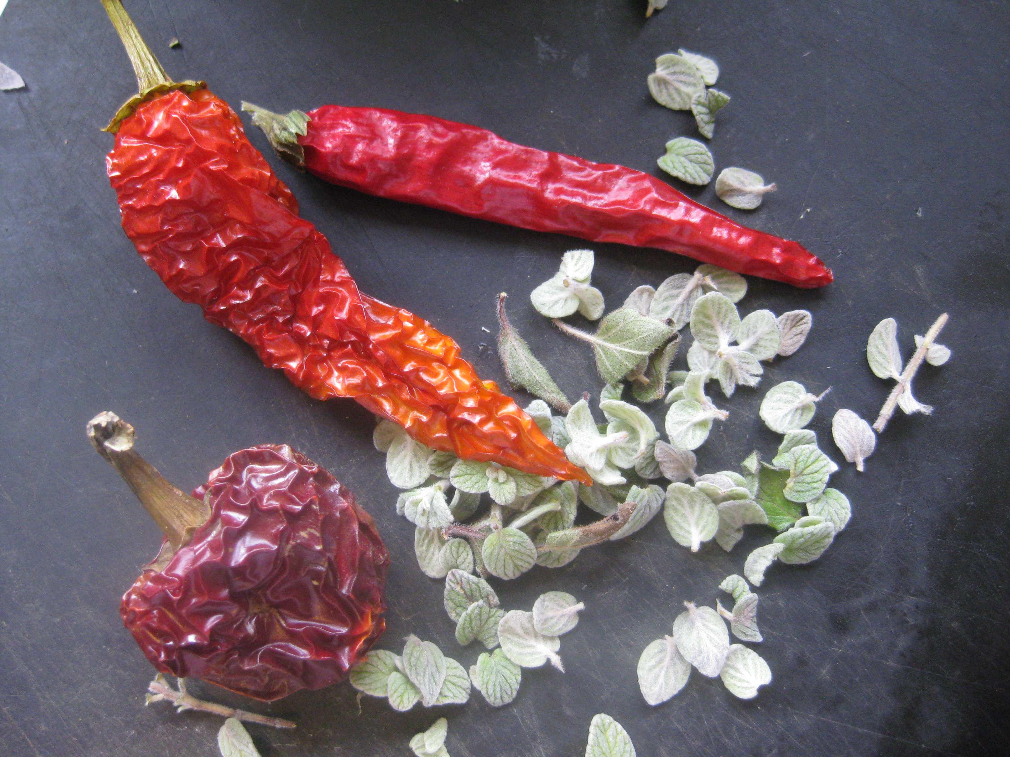 Locally, this one-pot meal is not much of a challenge no matter what your choice of protein. I chose ground turkey from nearby Griggstown Quail Farm and dried red beans from Cayuga Pure Organics, a little outside my normal geographic reach, but in-bounds for my personal DD Challenge. Both are very flavorful when cooked. I happen to crave tomatoes at all times of year so I used an abundant amount of the tomato puree that I canned last summer with the Amish Paste, Plum Dandy and field tomatoes from our CSA. I used a local red onion from last week’s farmers’ market, fresh poblano peppers from my own plant (the huge one we dubbed the “big ancho-lada,” harvested early and keeping remarkably well in the fridge), local organic garlic, an assortment of dried hot peppers from our CSA and my garden, and a handful of an oregano-like herb which is over-wintering nicely in my outdoor pots. The only non-local ingredients were salt, whole cumin seed and a few cloves. As a lark, I actually made this – including the beans — in one pot, using one additional bowl and my cutting board. I’ve rationalized the recipe since my insistence on one pot yielded a long cooking process.
