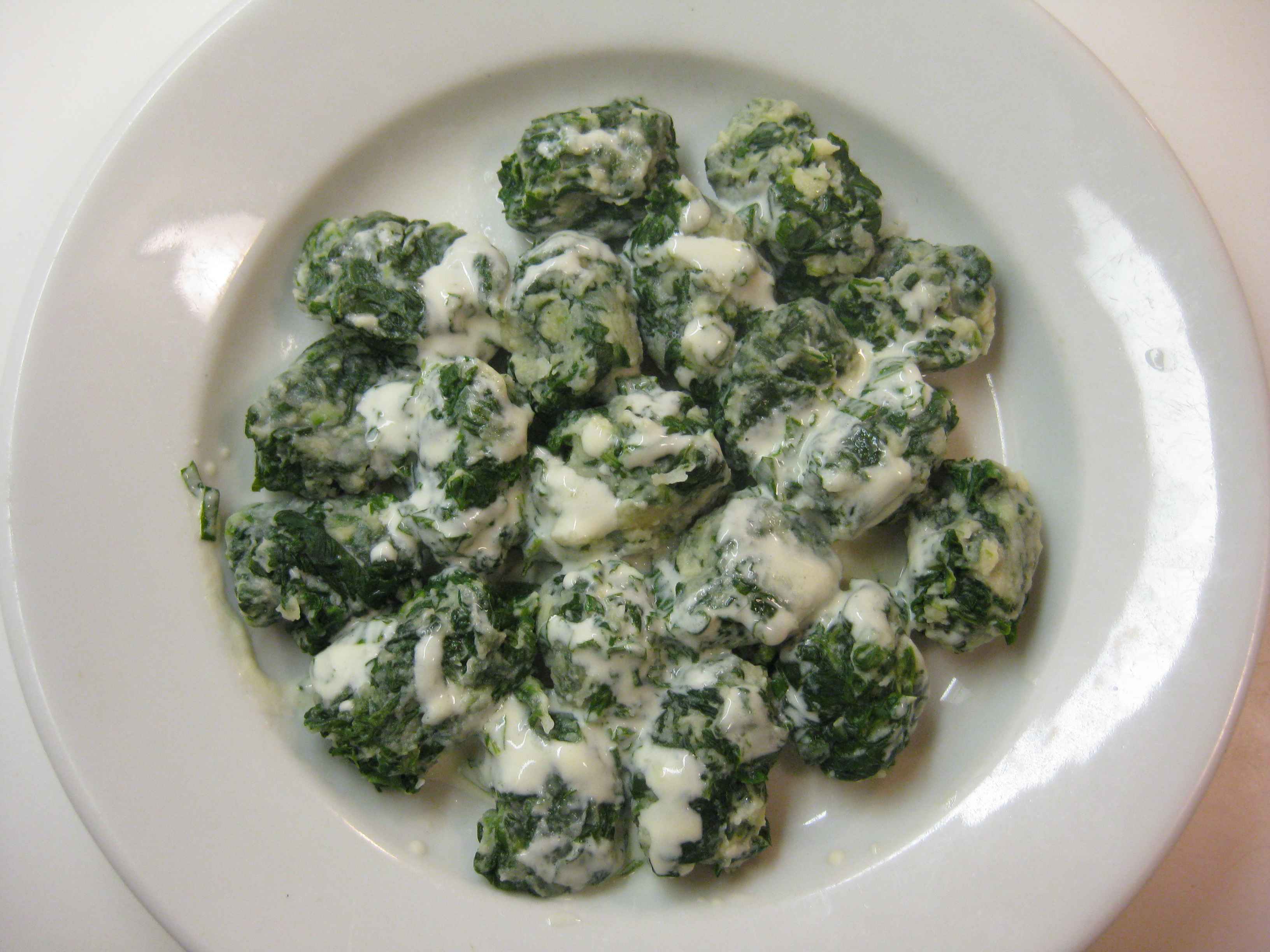 The sweet spinach of spring heralds a growing season of bountiful greens. It is the time of year when the herbs are most tender too so the pleasing combination of spinach and herbs is a natural result. Chopped and stirred into risotto, or just rice, or here, made into plump gnocchi, the greens embody the freshness of spring and the way they’re prepared is comfort food for a transitional season. I served them simply, dressed with reduced cream infused with herbs.