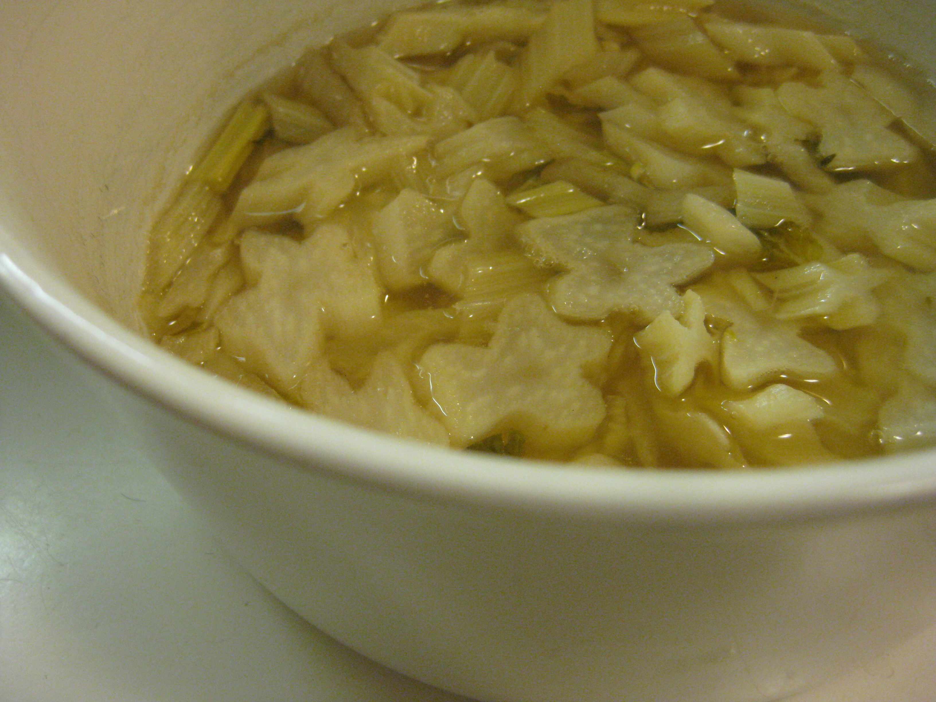 Just as with aigre-doux, I have an issue with the sequencing of his recipe. He makes the vinegar mixture first, and then prepares the vegetables. Vinegar loses its oomph when heated and evaporates. Maybe he meant to weaken the vinegar mixture, but I doubt it.
