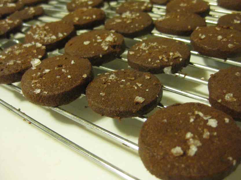I’ve been trying various savory cookies in anticipation of a big party I was cooking for this past weekend. The rosemary pine nut cookies and the Parmesan wafers with poppy seeds I made last month were both delicious but didn’t hang together as an ensemble. So I tried three of the five that Dorie featured in the article: chocolate-cayenne, rosemary-almond, and sesame seed. Cut in 1¼-inch rounds and stacked on a three-tier stand, these addictive little slightly sweet but mostly savory cookies were a big hit. I promised people at the party that I would provide the recipes, so I’ve linked to Food & Wine.