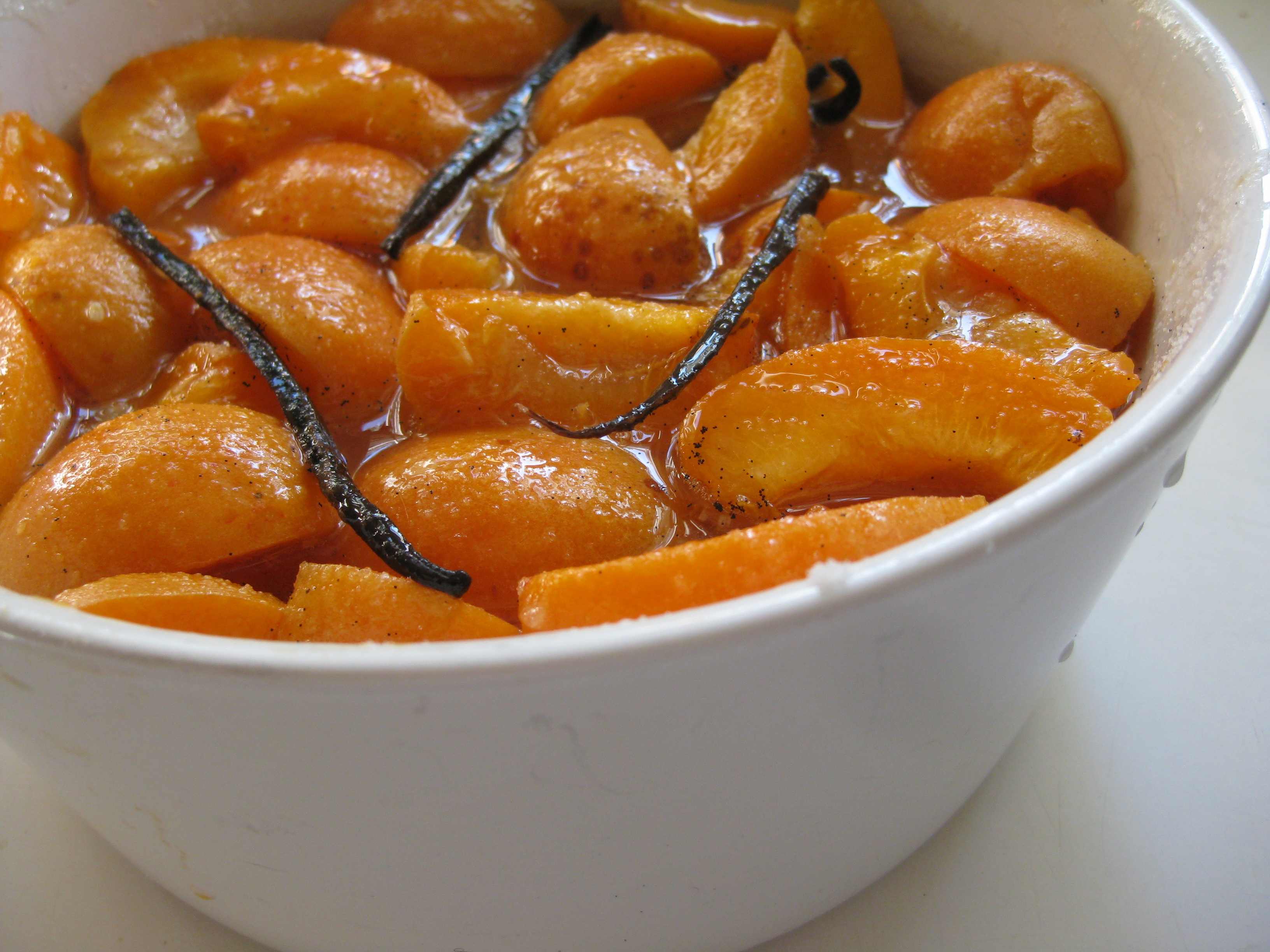 Add the apricots and their liquid to a saucepan and bring just to a bare simmer. Pour the mixture back into the apricot bowl. Let cool, cover with crinkled parchment paper and refrigerate overnight.