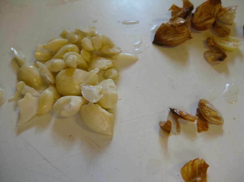 Just as with other stone fruit, especially cherry but also peaches, I crack open the hard pit to reveal a meaty little kernel that’s reminiscent of almonds. In fact, apricot kernels are the basis of the liqueur Amaretto, which comes from the Italian word for bitter, associated with bitter almonds and often thought of as an almond liqueur. The reason for this similarity is that many of these fruits, and some that we call nuts (almonds, walnuts for example) are “drupes” botanically speaking. They consist of a fleshy outer body surrounding a hard shell, inside of which is the kernel. To free the kernel, you need to crack the hard shell, which I do by covering the nuts with cloth and tapping them strategically with a hammer. You don’t want the hard shell shards to fly and you don’t want to pulverize the kernels. The kernels, like unblanched almonds, have a papery brown skin, which is removed by pouring boiling water over them (i.e., blanching them), and then slipping the skin off.