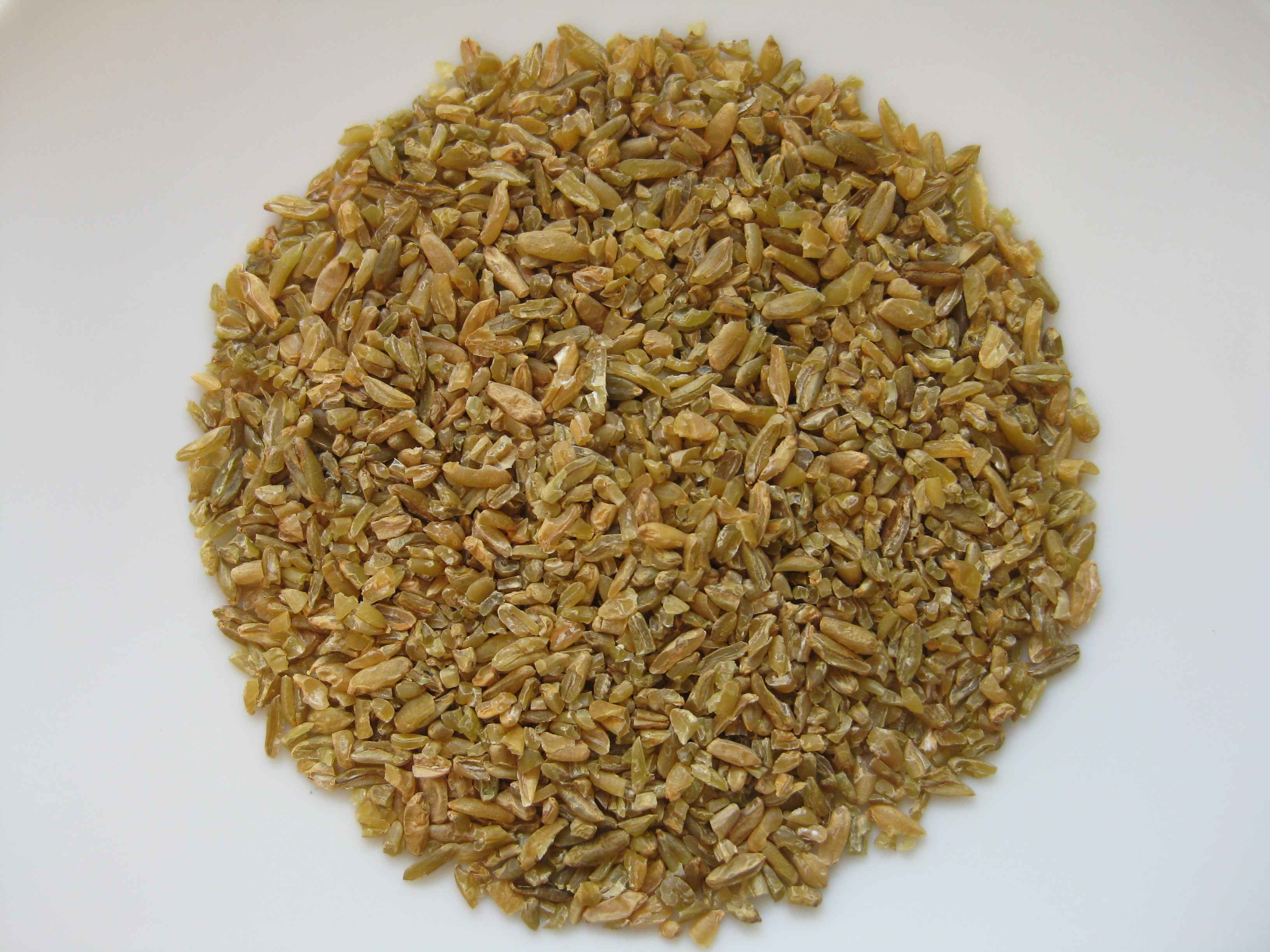 Freekeh, on the other hand, endures year-round and is a staple of the diets of many nationalities, from Eastern Europe to the Middle East. Maybe further afield. On the East Coast U.S. it is grown by the participants in Cayuga Organics, located in the Finger Lakes region of New York State. It requires less fertilizer than other types of wheat, so I hear, and therefore is a candidate for organic production. Our local health food store stocks it and I became intrigued when blogging about cooking with local ingredients during the dark days of winter. Freekeh comes from slow-roasted green spelt berries (spelt is a type of wheat lower in gluten than most). Freekeh is produced as whole berries and is also cracked. Mine was cracked and cooked in about 35-40 minutes. I used a ratio of 1.5:1 water to grain, meaning 1½ cup of water to 1 cup of grain, starting them together in a pan (unlike other grains that you add to boiling water) and simmering them until tender.