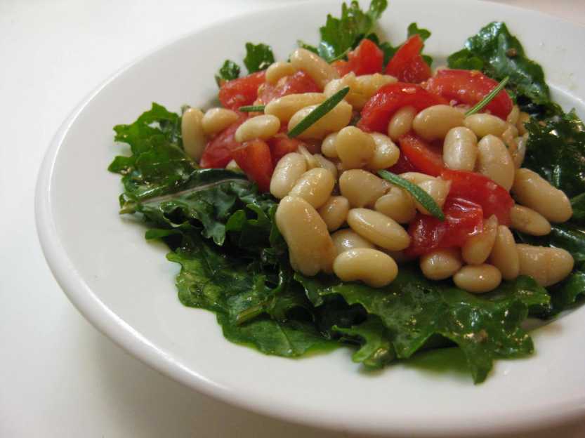 I served the bean salad on a bed of small kale leaves that had been tossed in the same vinegar. My garden has been producing great kale from the same plants for nearly a year! That’s crazy but true. I’m about to rip them all out and start over but it’s tempting not to after all the hard work to keep them from bolting.