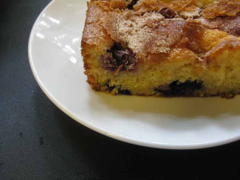 I found the popular version I made here on the Internet in several places, including Smitten Kitchen, where I got this recipe, and Lottie + Doof, both of which track back to Cook’s Country Magazine, which claims to have adapted the original. This is not that close to Powell’s recipe for Blueberry Boy-Bait. It’s simply a buttery blueberry cake that appropriates the name. Blueberry boy-bait has become a genre not a single recipe. This recipe uses 1 cup of butter versus Powell’s 2/3 cup, and amps up the sugar by combining brown sugar with white. It also uses a completely different method. Don’t get me wrong. This is a delicious cake. I’m just saying.