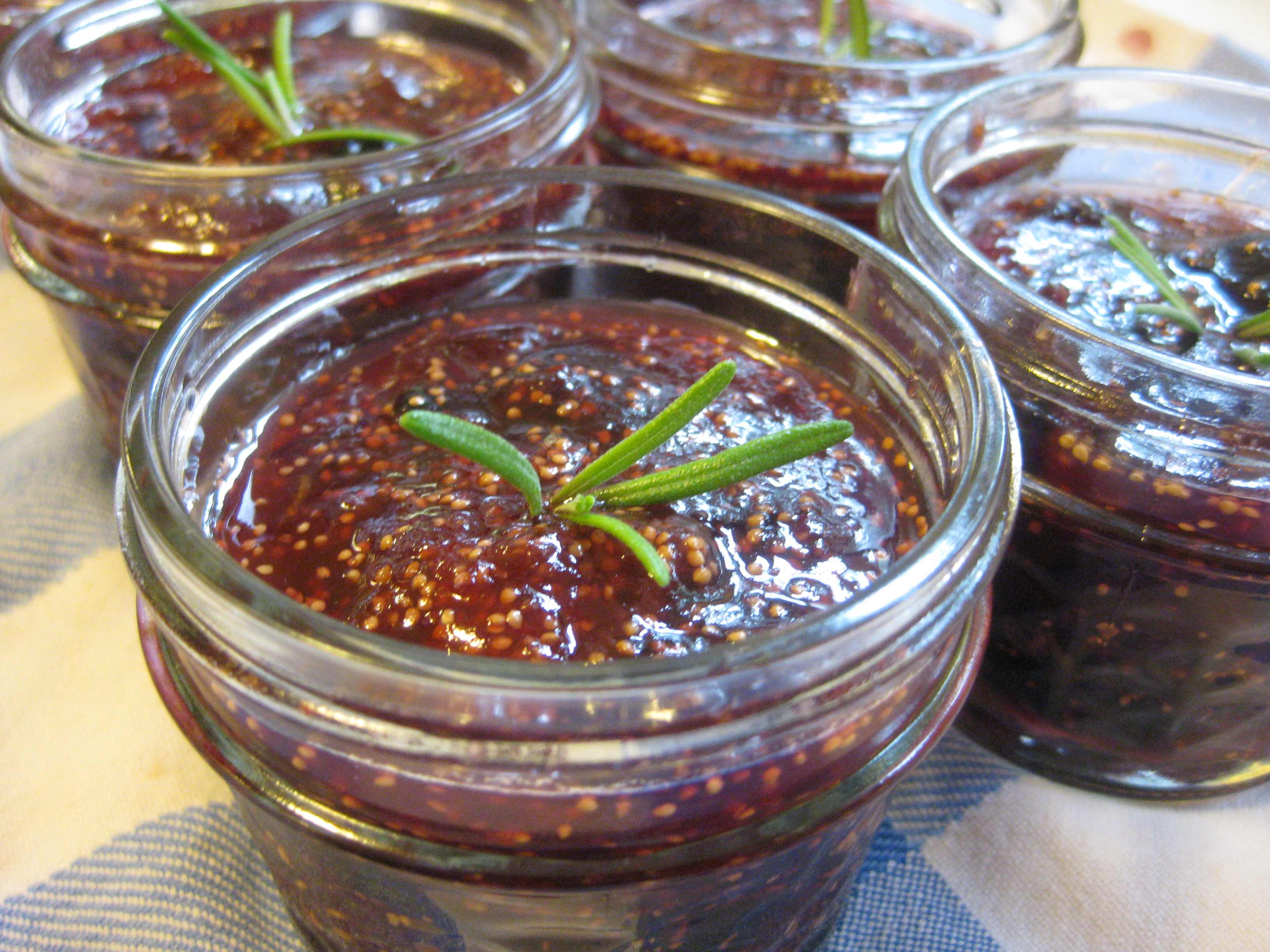 I was happy with the jam of green figs and oranges that I made two years ago, and with the fig jam with rosemary and lemon that I devised last year. However, this year, I tweaked the rosemary and lemon version to decrease the proportion of sugar to fruit, and to add a little lemon juice at the end, which freshens the taste with a bright note. And, in addition to cooking the rosemary with the figs, I added a little sprig at the end, submerging it completely in the jam (important since you want to avoid air bubbles and potential spoilage). This will once again be a delicious accompaniment to an appetizer of soft cheeses around the holidays.