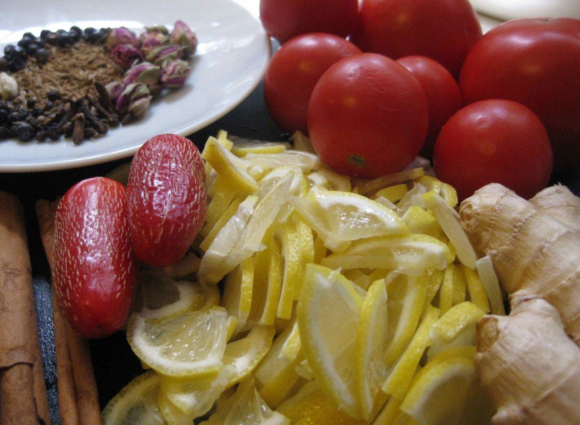 While flipping through the book in our public library (which some brilliant person endowed to purchase the latest cookbooks), tomato jam caught my eye. Every year, as I am canning tomatoes and tomato sauces for the pantry – in abundance – I experiment with tomato jam to serve as a condiment alongside a vegetable, poultry or fish dish, or to serve with soft cheese and croutons as an appetizer. Last year, my tomato ginger ketchup was outstanding and while I’ll make it again, Mourad’s tomato jam was in my sights. I was already under a Moroccan influence after my recent experiments with chermoula, and having just put up a jar of preserved lemons for the pantry.