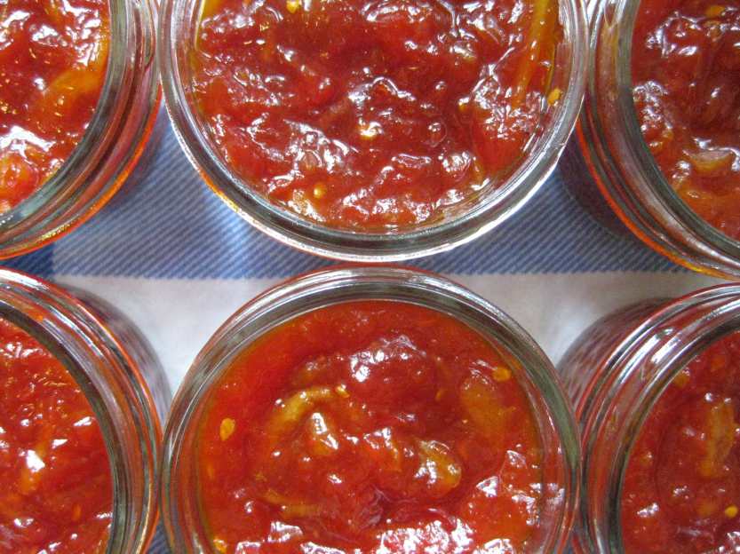 Makes about 4 cups, filling 8 four-ounce jars or four 8-ounce jars.