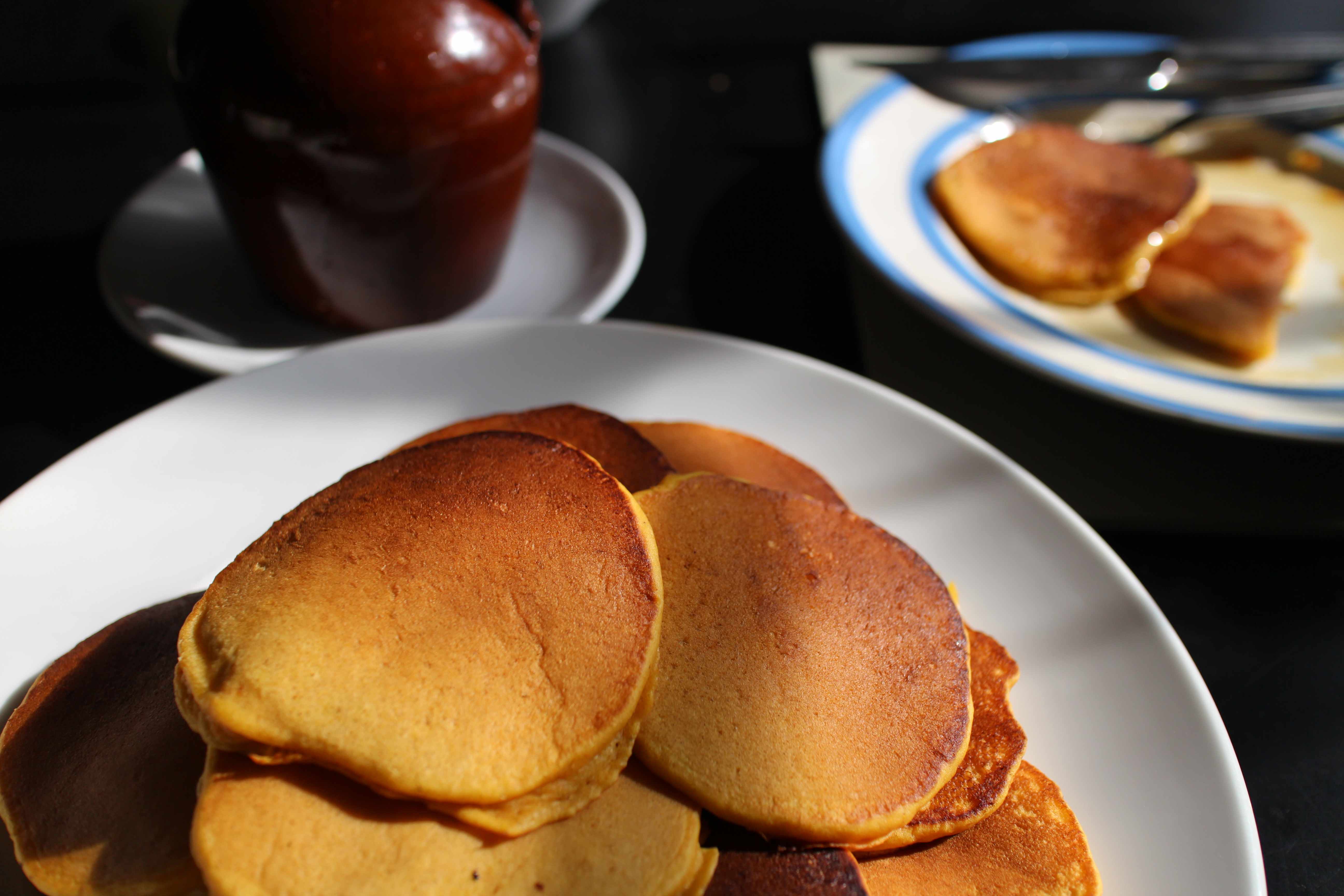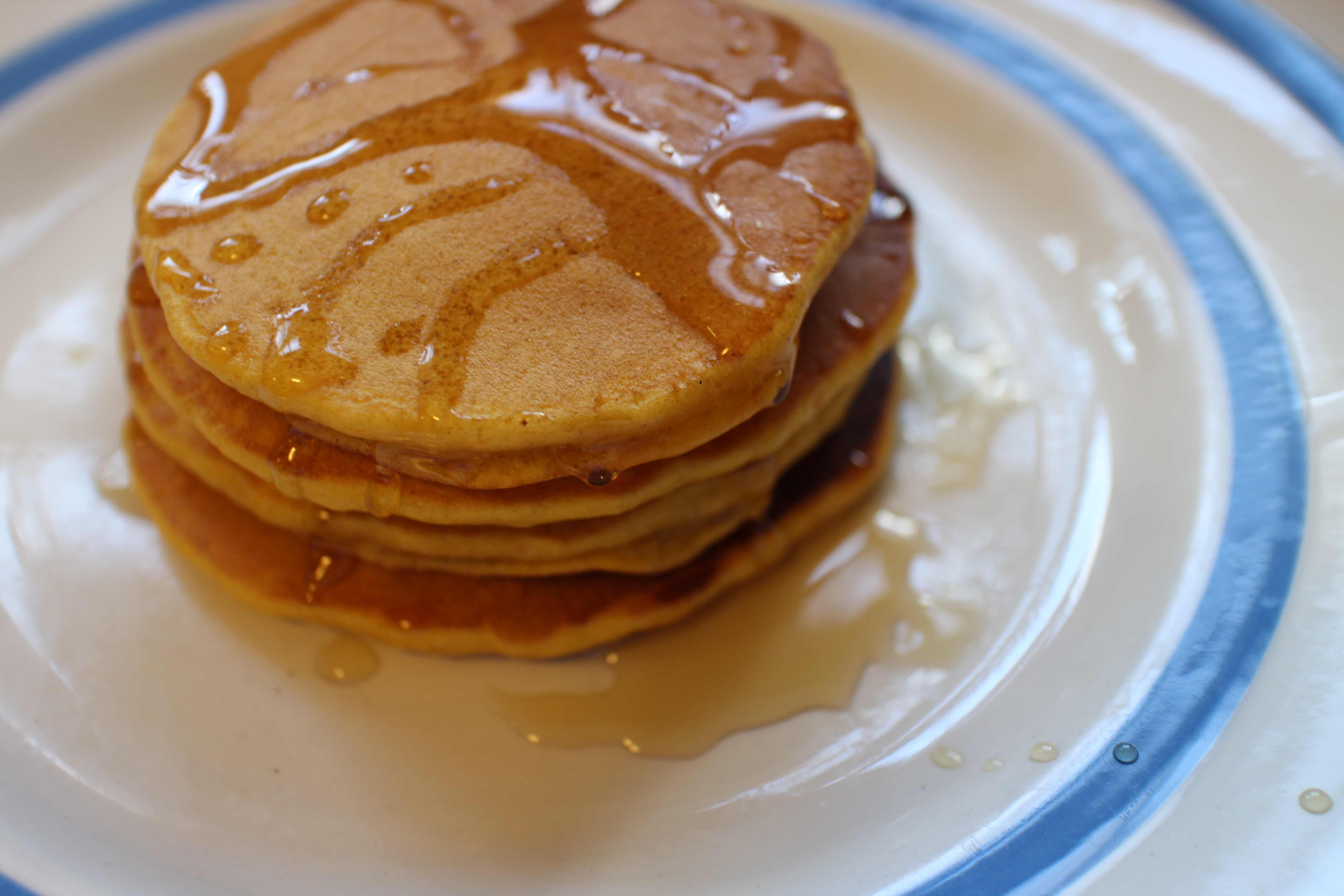 Personally, I am not a pancake lover. My family, however, is nuts for them. They could eat the same basic ones over and over. And they have, given my lack of enthusiasm. They even invite friends over just for weekend pancake breakfasts. For me, it’s a big shrug. But… given my curiosity about food in general and my interest in satisfying the gluten-free, I’ve been looking into a few alternative pancakes. This one’s not GF but I know I can make that work once I understand how the ingredients interact. Pumpkin and winter squash are forgiving ingredients.