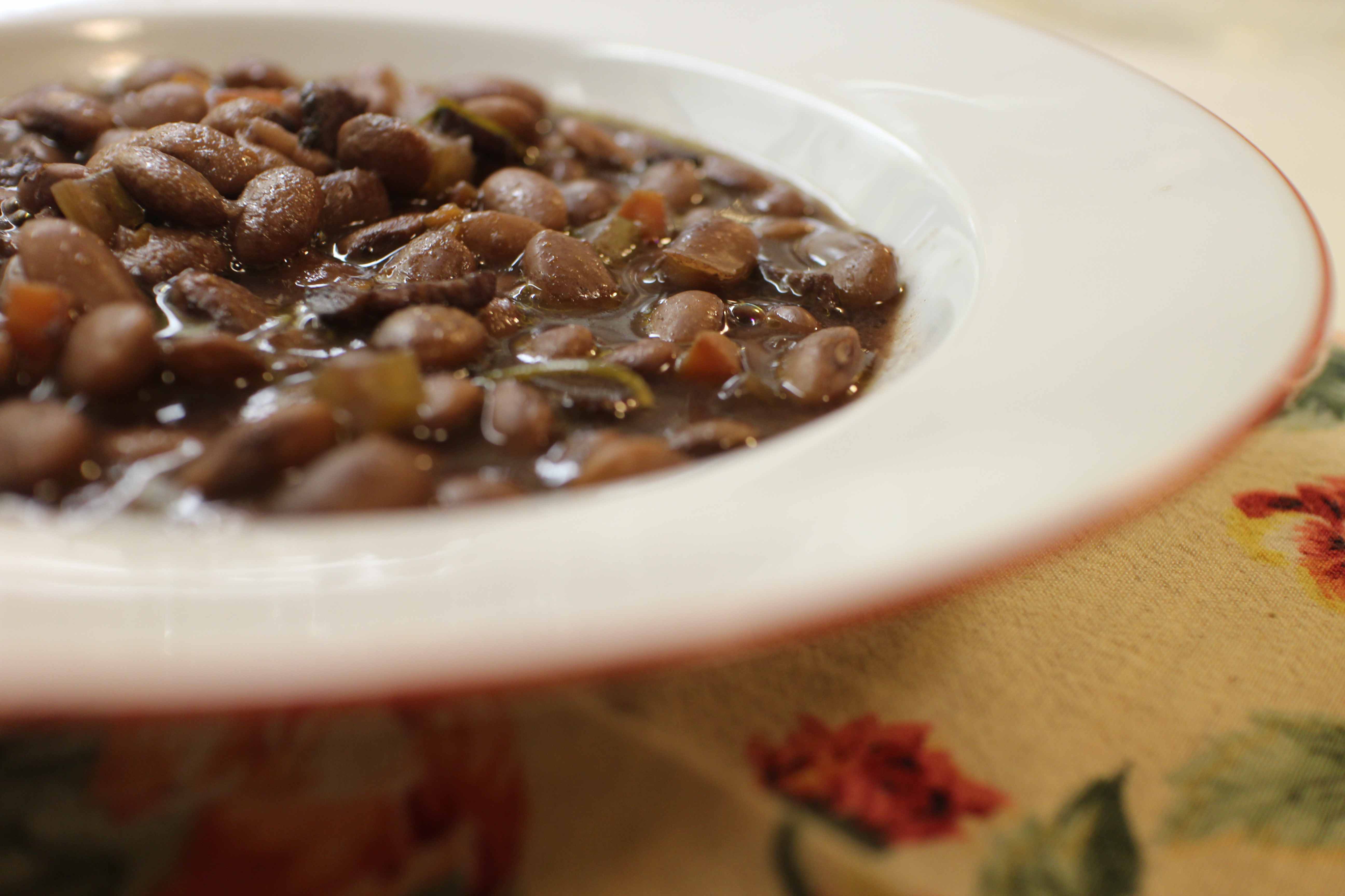 Pinto Beans with Red Wine and Smoky Bacon adapted from Melissa Clark, NYT