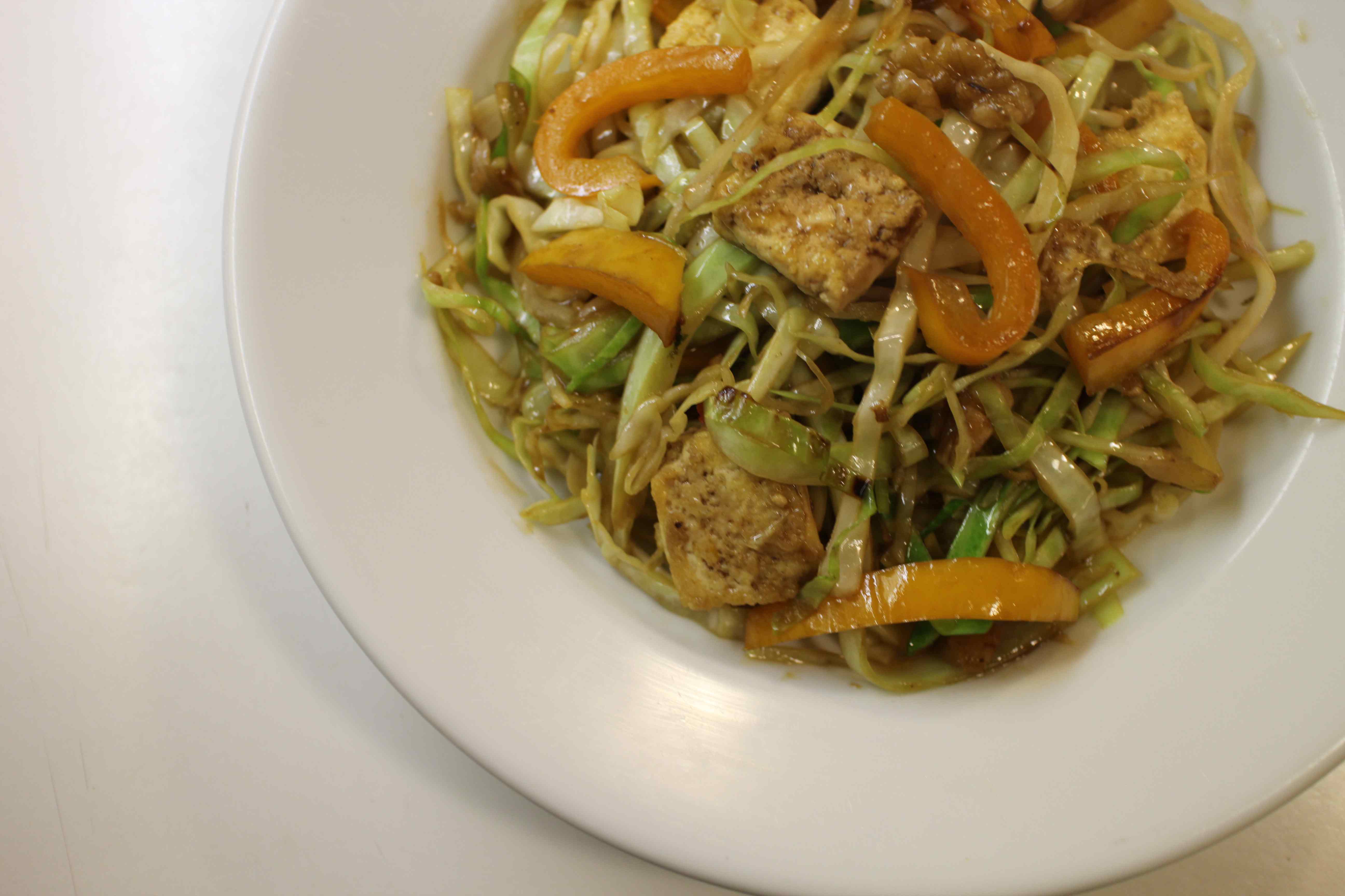 Stir-fry of Cabbage, Tofu and Peppers adapted from Martha Rose Shulman, NYT