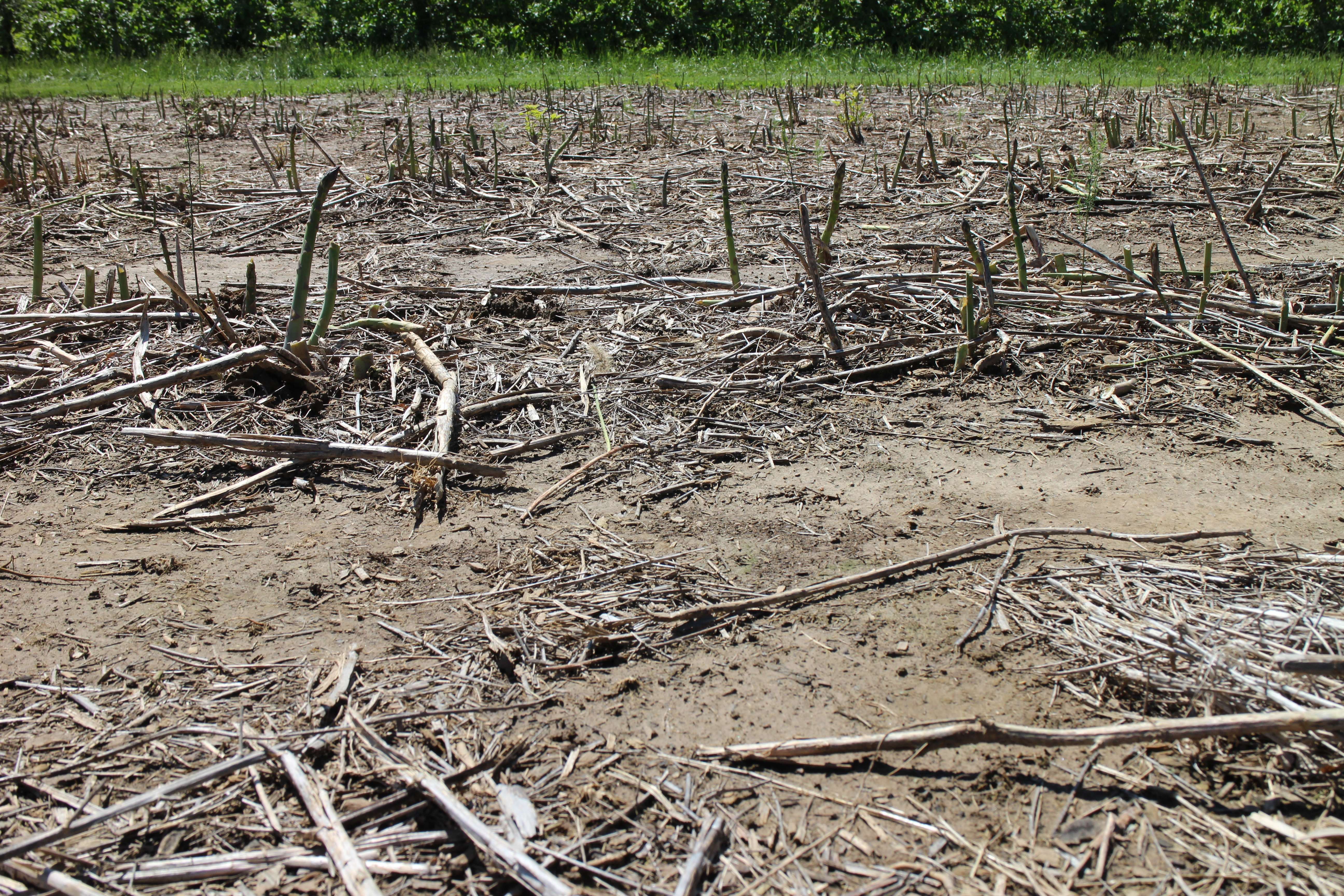 The asparagus field is disorienting to navigate. The gray ground is strewn with decimated stalks of previous seasons, fallen into a wasteland that snaps slightly as you move through it. While there are rows where you’re told to walk, familiar vertical cues are elusive. There are just a few tiny green shoots here and there, poking through the ground, ready to be snapped off and placed in your bucket.