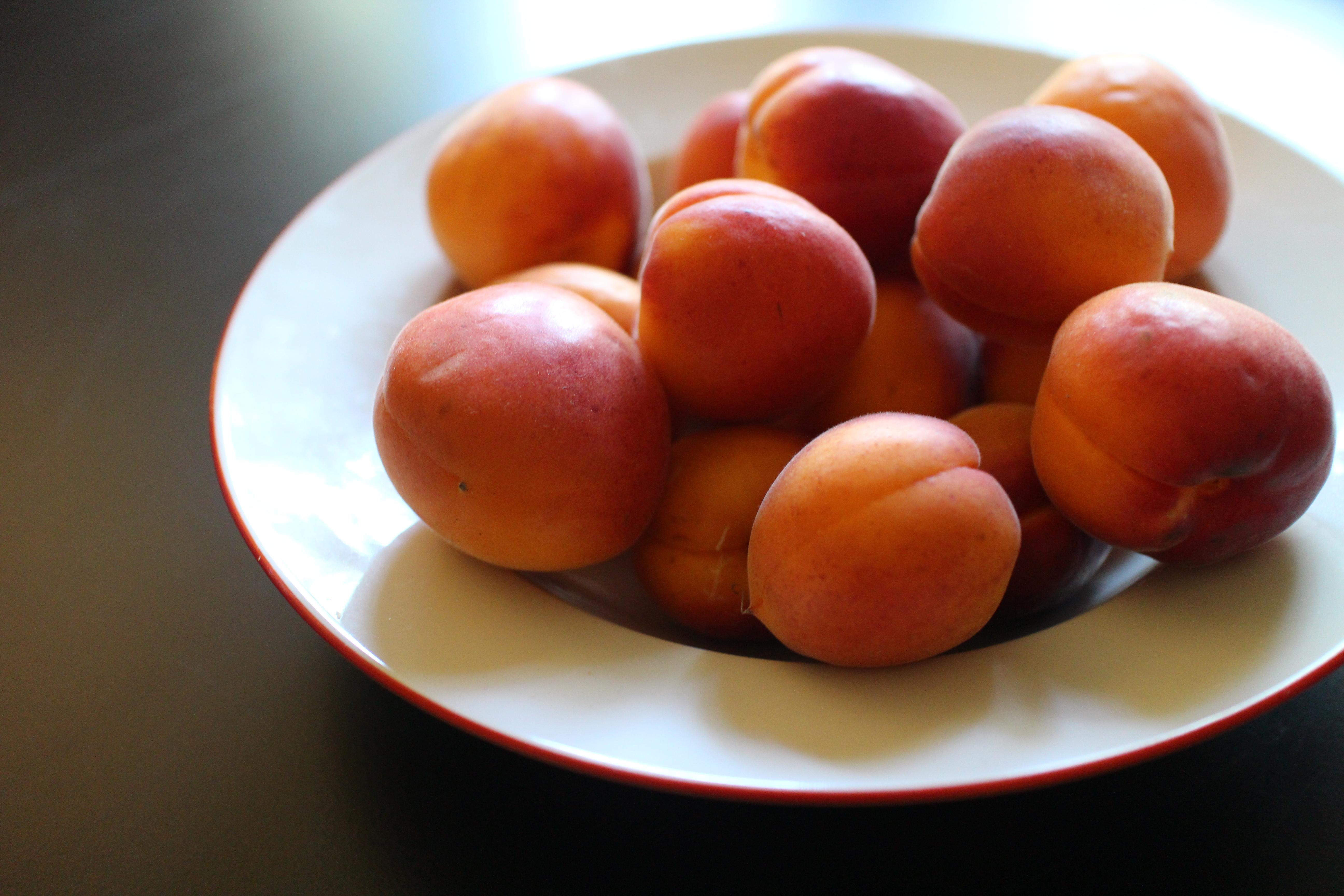 This year, I went back to preserving individual fruits in brandy, a jarful at a time. Unlike the mélange of fruits in Rumtopf, people will be able to recognize what they’re eating. So far, I’ve put up cherries and now apricots using this method, and now I’m on the hunt for just the right sugarplum. The apricots are a delightful rosy variety, rather small (1¼ inch diameter) and grown by Red Jacket Farm in the Finger Lakes region around Geneva, New York. Red Jacket claims to be the largest grower of apricots in the east. I look forward to the few weeks a year when their apricots are available.