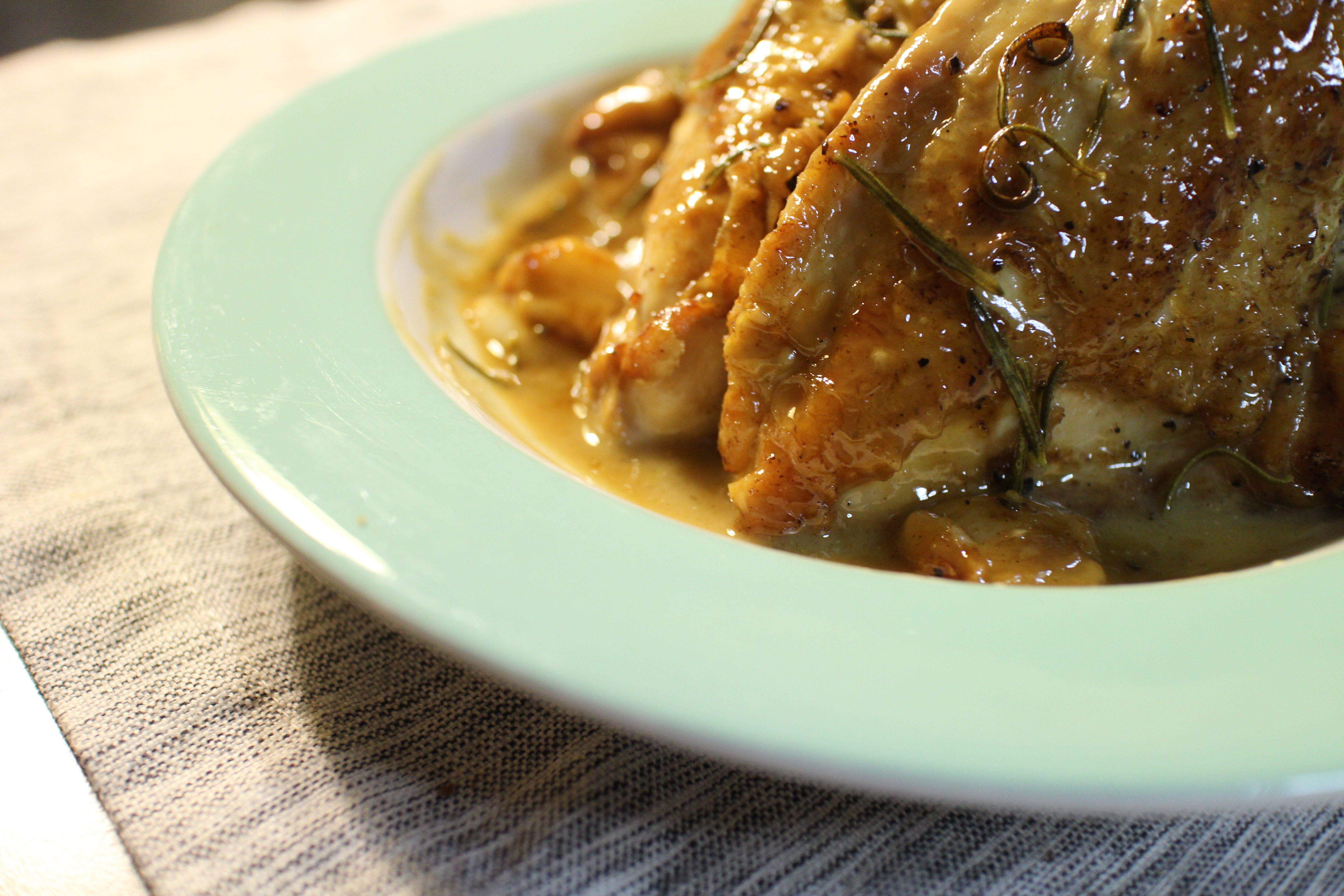 I love the simplicity of techniques and ingredients of Marcella’s cuisine. Chicken roasted with two lemons is a classic. This month, we particularly enjoyed the similarly simple Pan-roasted Chicken with Rosemary, Garlic and White Wine (Page 304 in Classic), which is repeated in Essentials minus a tablespoon of butter.
