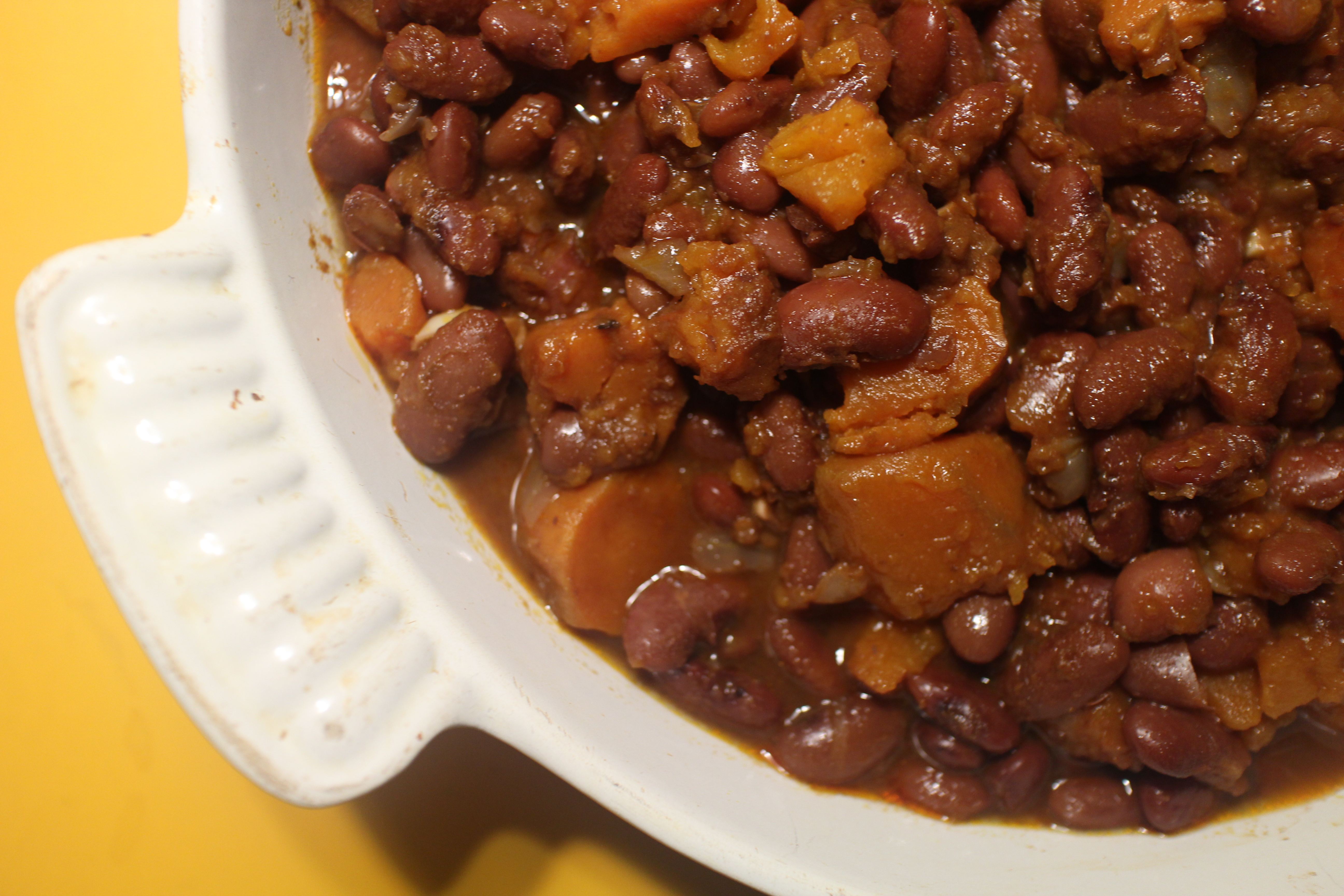 Baked Beans with Sweet Potatoes and Chipotles adapted from Martha Rose Shulman, NYT
