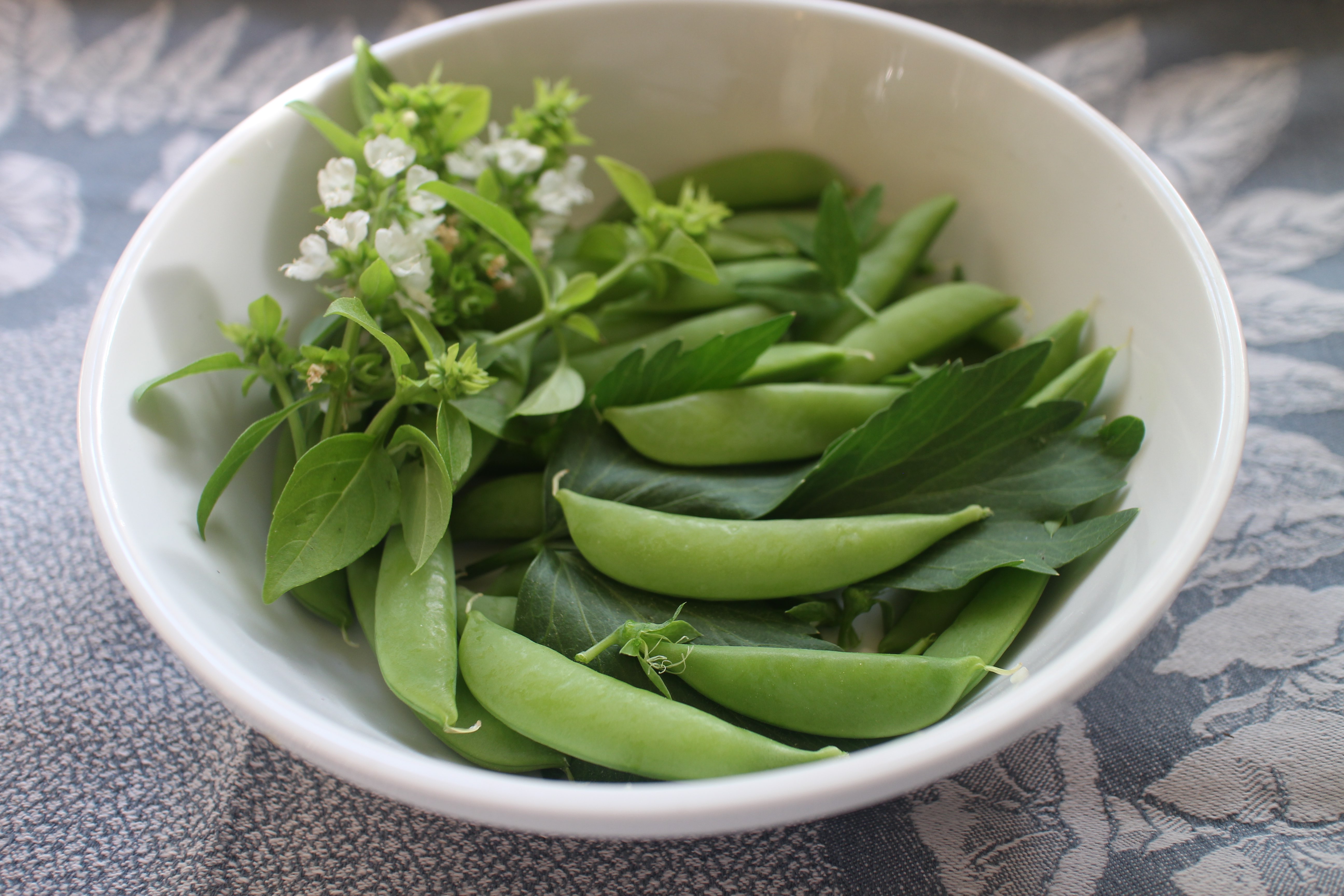 I typically plant a few varieties of each vegetable or herb. Some are trials for our larger farm, and some are just a local experiment. I discovered yellow snow peas from India a few years ago and they’re now a staple. I added a prolific types of snap pea this year, and a darling dwarf shelling pea. I have ten varieties of basil that I bought as small plants. As they are ready to transplant into the garden when the nights become warm, I pinch them back and toss a handful into wholewheat (or buckwheat) linguine lightened by long threads of zucchini and garnished with blanched peas. All it needs is a spoonful of aromatic olive oil and a sprinkle of salt. Spring in a bowl.